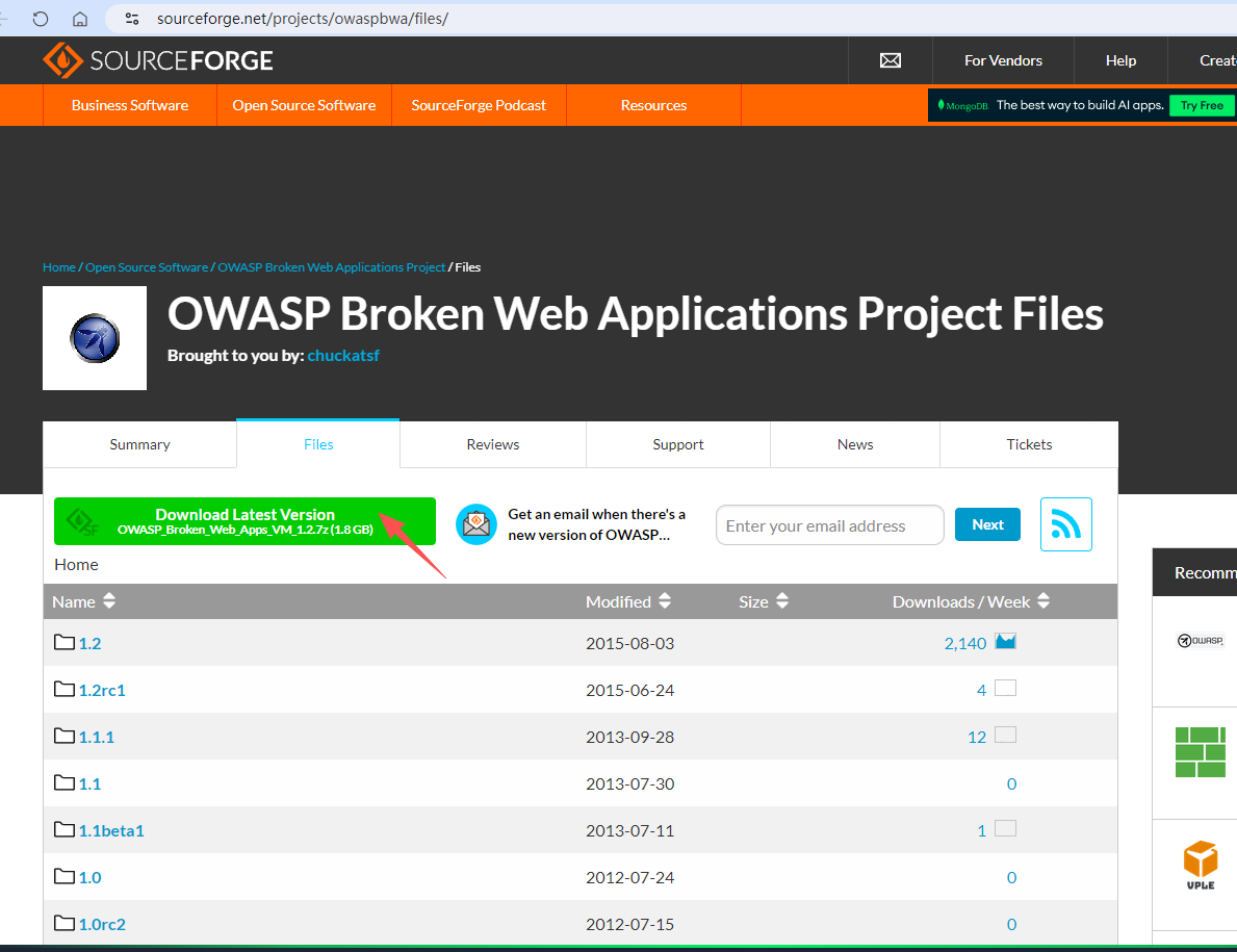 https://sourceforge.net/projects/owaspbwa/files/ 选择Download Latest Version即可获取最新版