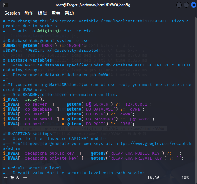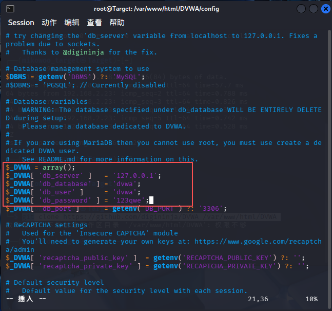 修改 DVWA 的配置文件