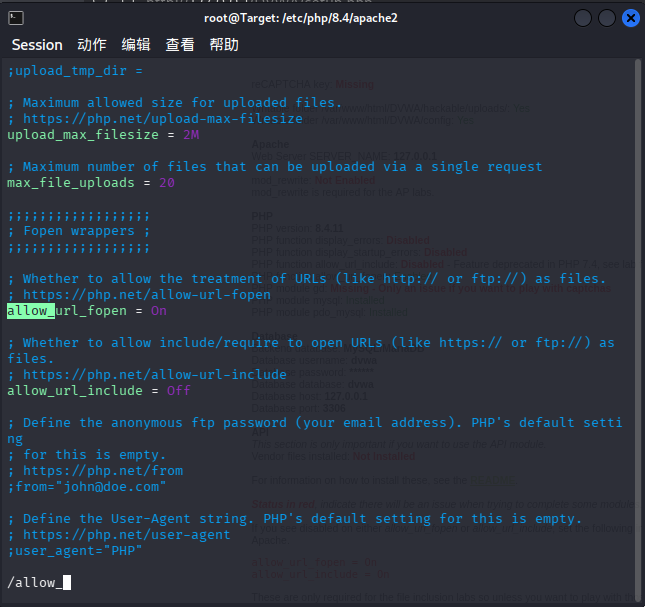 修改/var/www/html/DVWA/config/config.inc.php文件