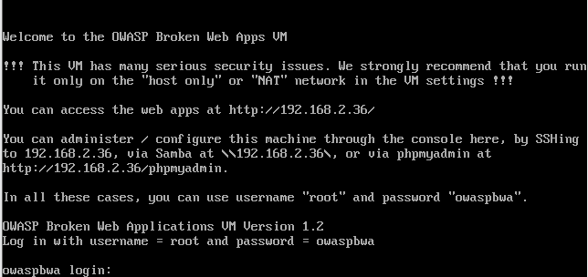 VMware 打开OWASP 靶机