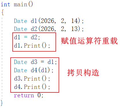 赋值运算符重载是一个默认成员函数,用于完成两个已存在的对象直接的拷贝赋值。这里需要注意和拷贝构造的区别,拷贝构造用于一个对象拷贝初始化给另一个要创建的对象。
