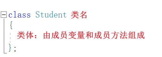 class是定义类的关键字。类体是{}中的内容。类体中有一系列的成员,成员可以是变量,函数或者类型。类体中定义的变量也称为成员变量,类体中定义的函数也称为成员方法或成员函数 。
