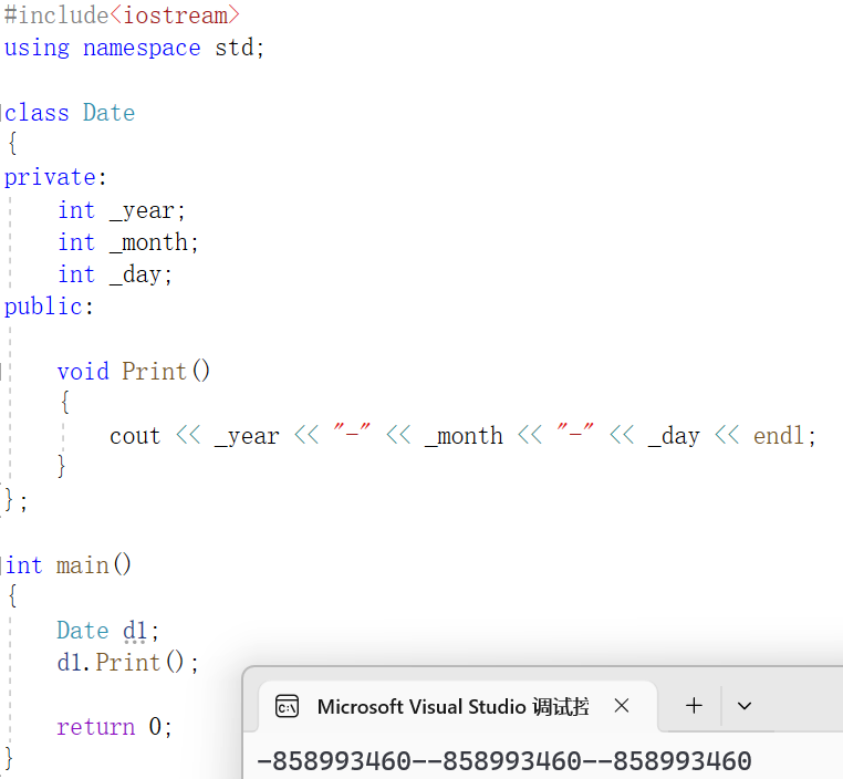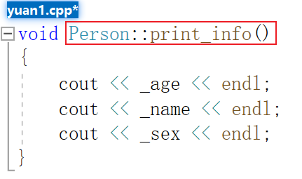 注意:如果在类的外面定义类的成员,需要使用作用域从操作符::表示定义的成员属于哪一个类。