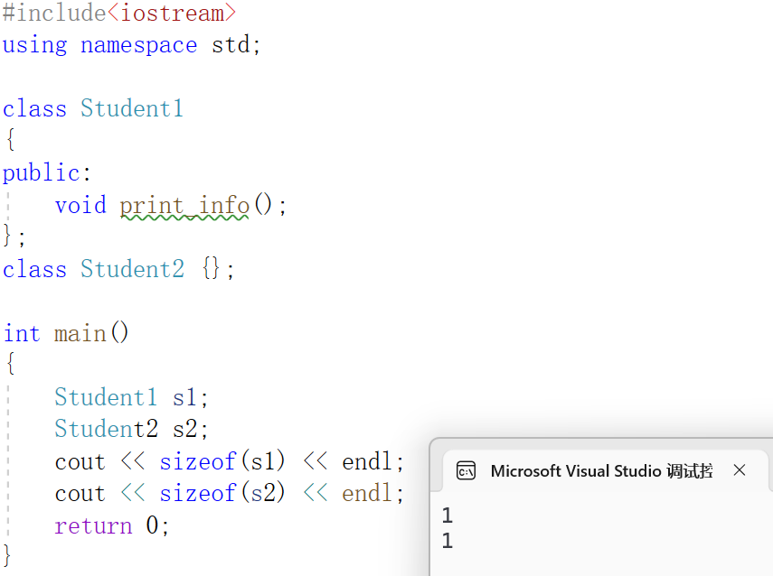 ③C语言中struct加上结构体的名称才代表这个结构体的类型,但是在c++中结构体代表一个类,因此结构体的名称直接代表结构体的类型。由于C++兼容C语言因此在C++中也可以在结构体中通过struct加上结构体的名称代表这个结构体的类型。(直观区别见下面两端代码)