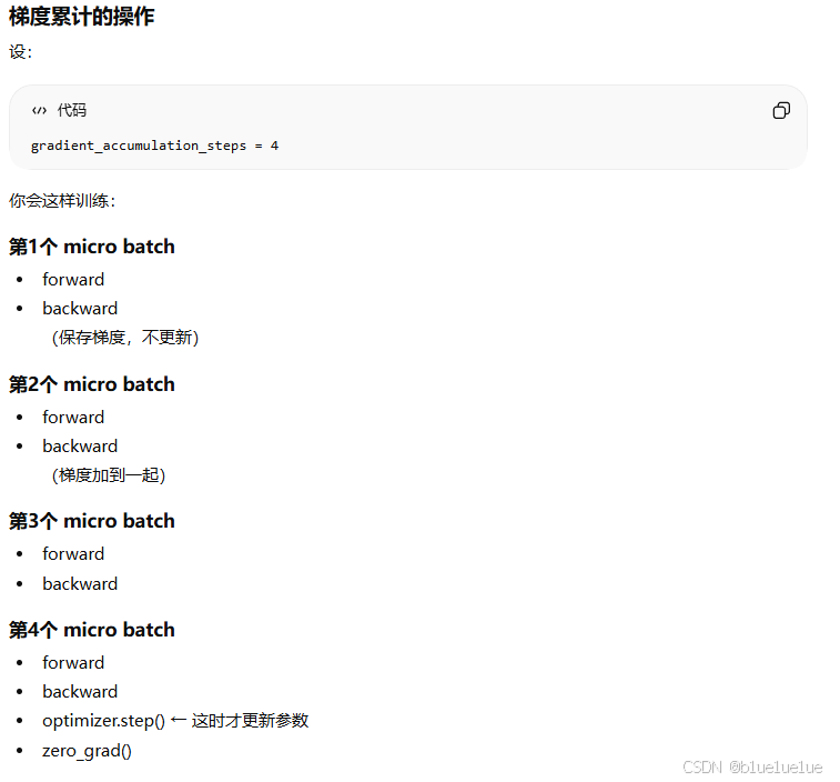 - Mini Batch:LLM 训练输入一批 token,计算一批 loss,然而在 token 输入量较少时,计算的 loss 统计量不够,其噪声较大,而一次性并行计算 loss 时,增加单次处理的 token 数,其显存压力也大,因此采用 Mini Batch 的方式,每次统计一部分 Batch 的 梯度,然后若干次累加梯度,再一次性更新