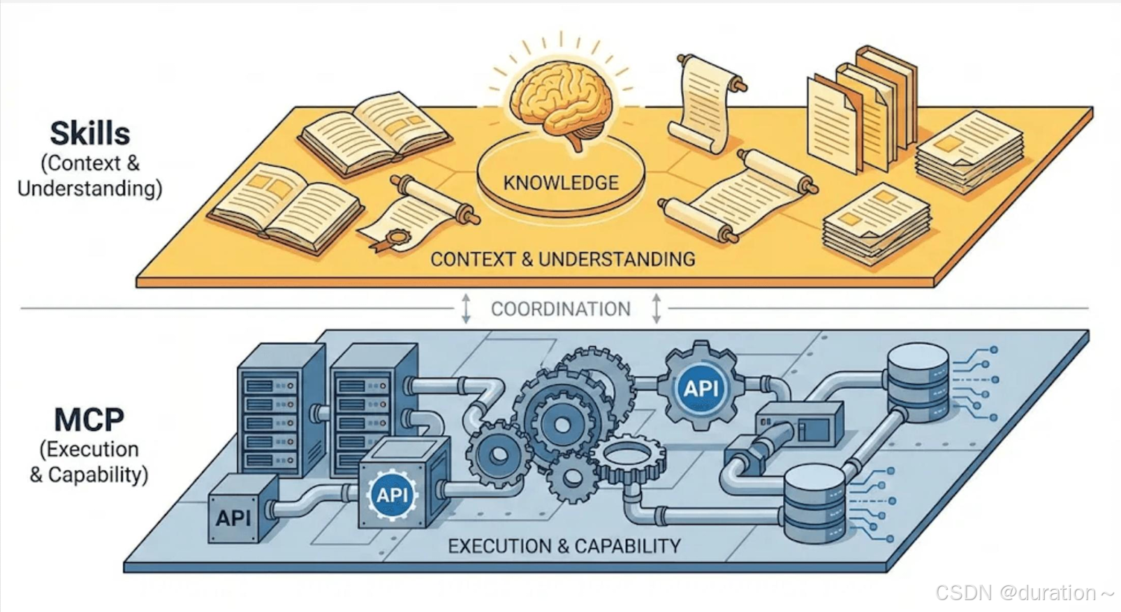 Skills 关注如何降低模型负担,MCP 关注如何统一接口标准。