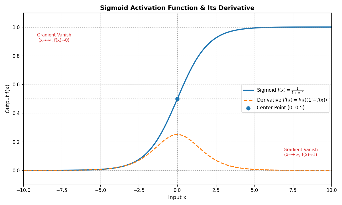 | Sigmoid | f(x)=11+e−xf(x) = \frac{1}{1 + e^{-x}}f(x)=1+e−x1 | (0,1)(0, 1)(0,1) |