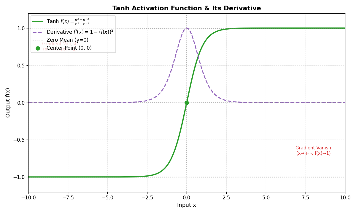 Sigmoid,收敛速度更快(输出零均值)。 - 适合需要正负输出的场景。