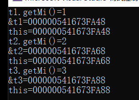 //printf("t.getMi()=%d\n", t.getMi()); 报错,因为t是const对象,只能调用const成员函数