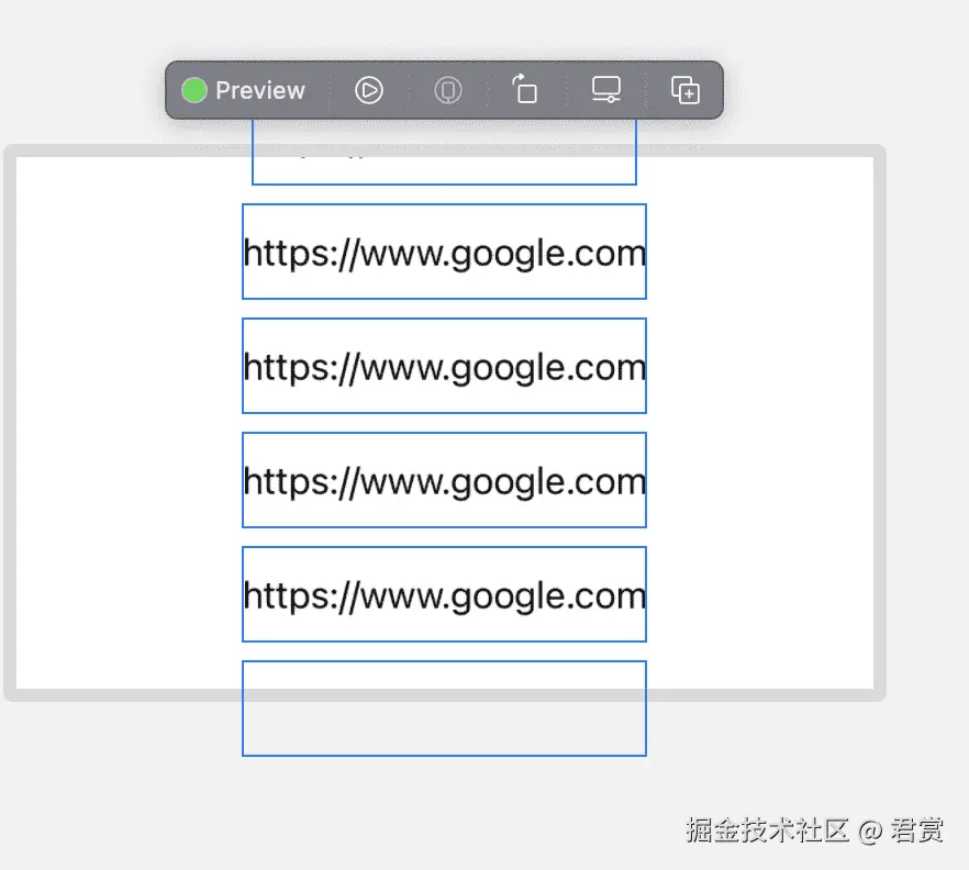 我们从预览看出来,整个 ScrollView 是让中间的内容显示出来了。我们设置 ScrollView Frame 顶部开始布局。