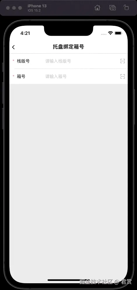 创建托盘绑定箱号界面