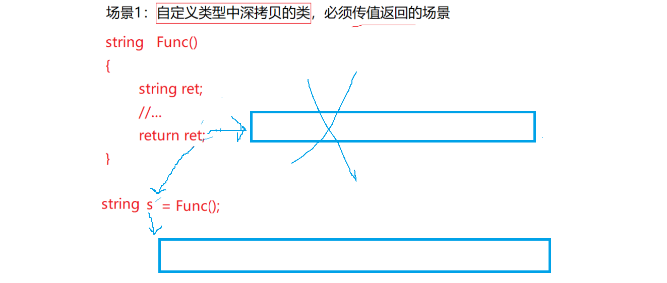 右值引用的核心价值是进一步减少拷贝,弥补左值引用没有解决的场景,比如传值返回。下面看场景1:自定义类型中深拷贝的类必须是传值返回的场景,不是深拷贝的价值不大: