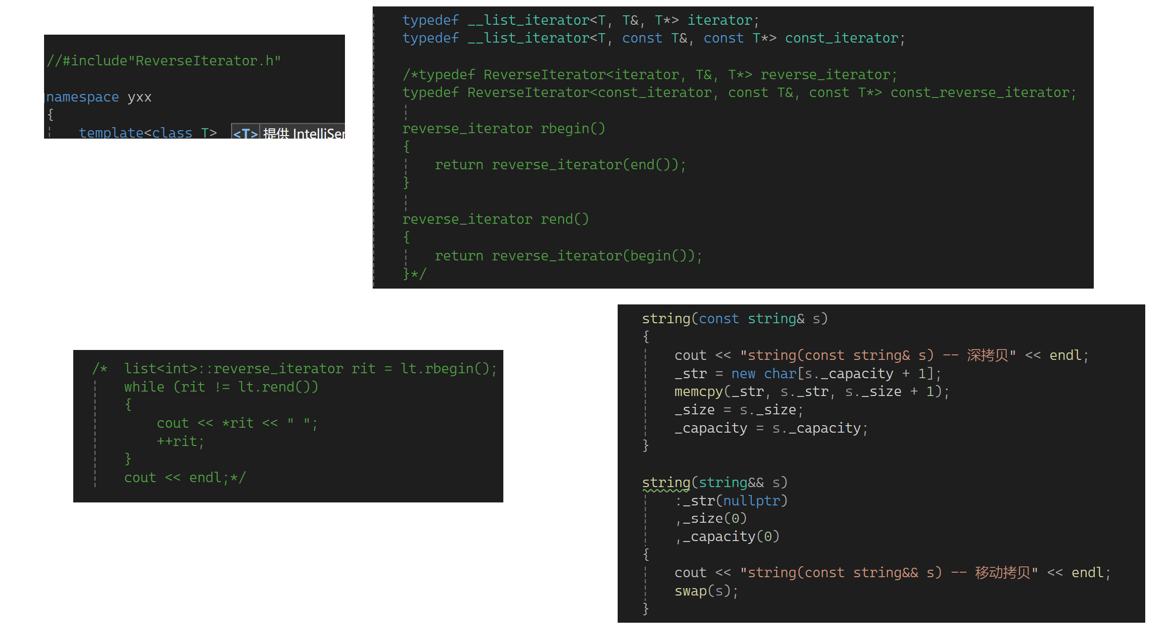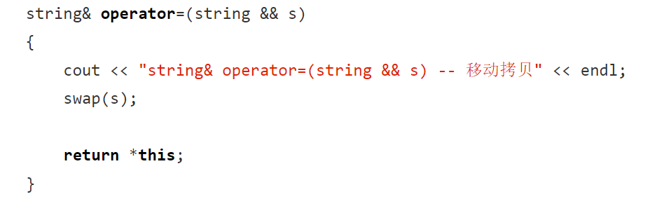 这如果不优化是拷贝生成一个临时对象,临时对象再拷贝给ret1,所以可实现一个移动拷贝:
