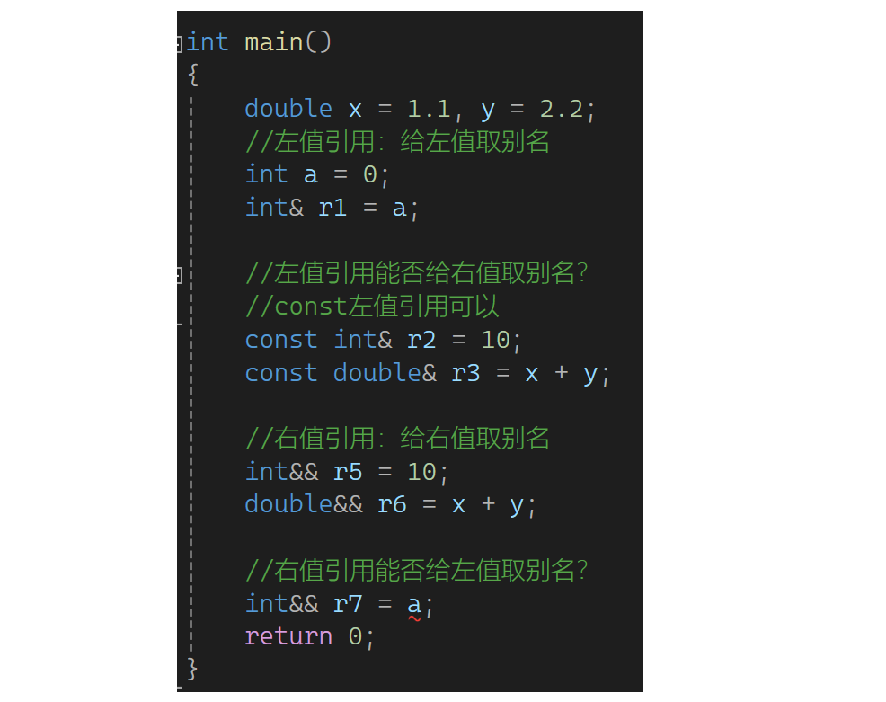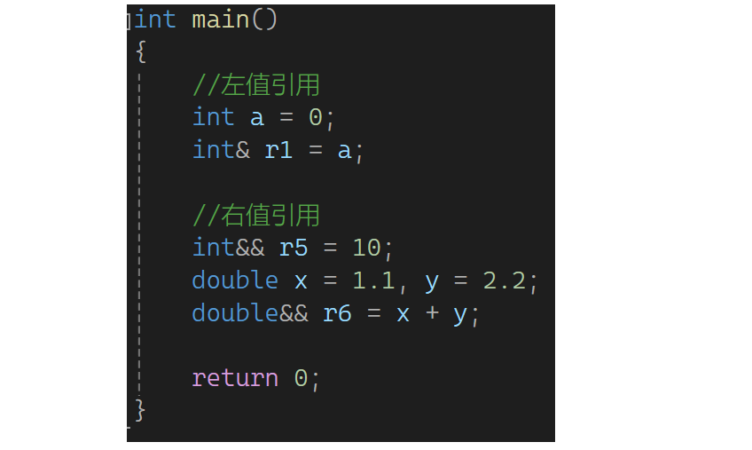 下一部分来看看左值引用和右值引用:引用是取别名,左值引用就是给左值取别名,右值引用就是给右值取别名。一个&是左值引用,两个&是右值引用。比如: