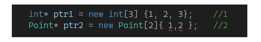 之前说过单参数构造支持隐式类型转换,有了花括号相当于多参数构造也支持隐式类型转换,如:A a = 5,如果没支持要这样写------A a = A(5)或A a(5)。B b = {3, 2,5},如果没支持这样写------B b = B(3, 2.5)或B b(3, 2.5)。同时回顾一下这里:Pointer& r = {3, 3},这样不支持,加const就支持了,因为类型转换都会产生临时对象,临时对象具有常性。再看下一部分: