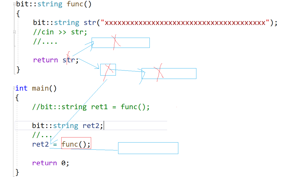 func函数返回的是右值中的将亡值,因为它的生命周期只在ret2 = func()这一行,再往下走就析构了。此时看,ret2 = func()这是个赋值,比如: