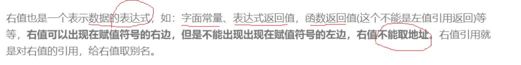 右值的特点是不能取地址,一般在右边,不能出现在右边。比如对应的右值的场景: