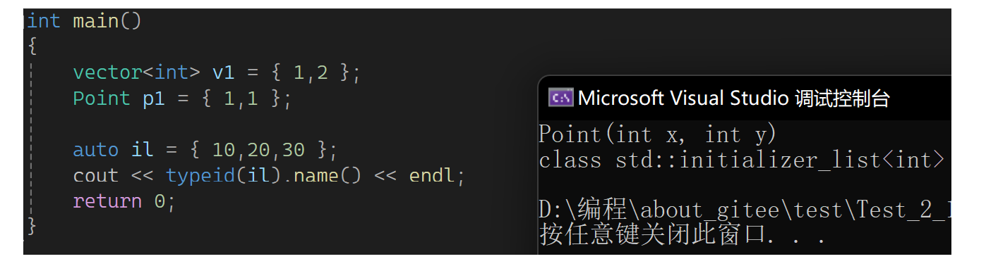 C++11把直接写的列表新增了一个类型叫initializer_list: