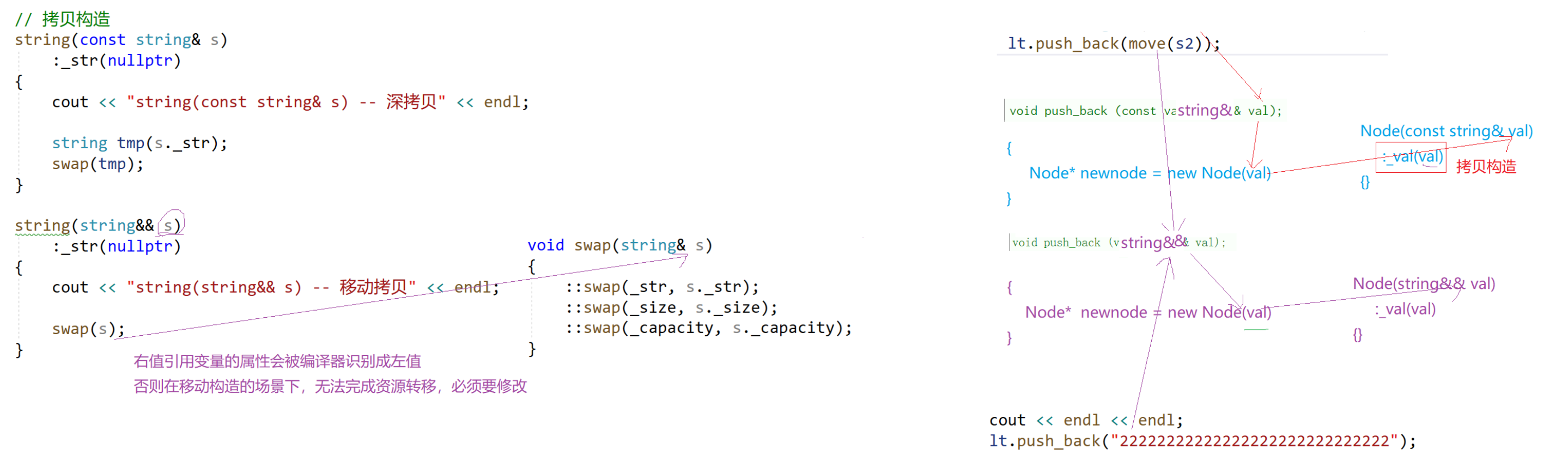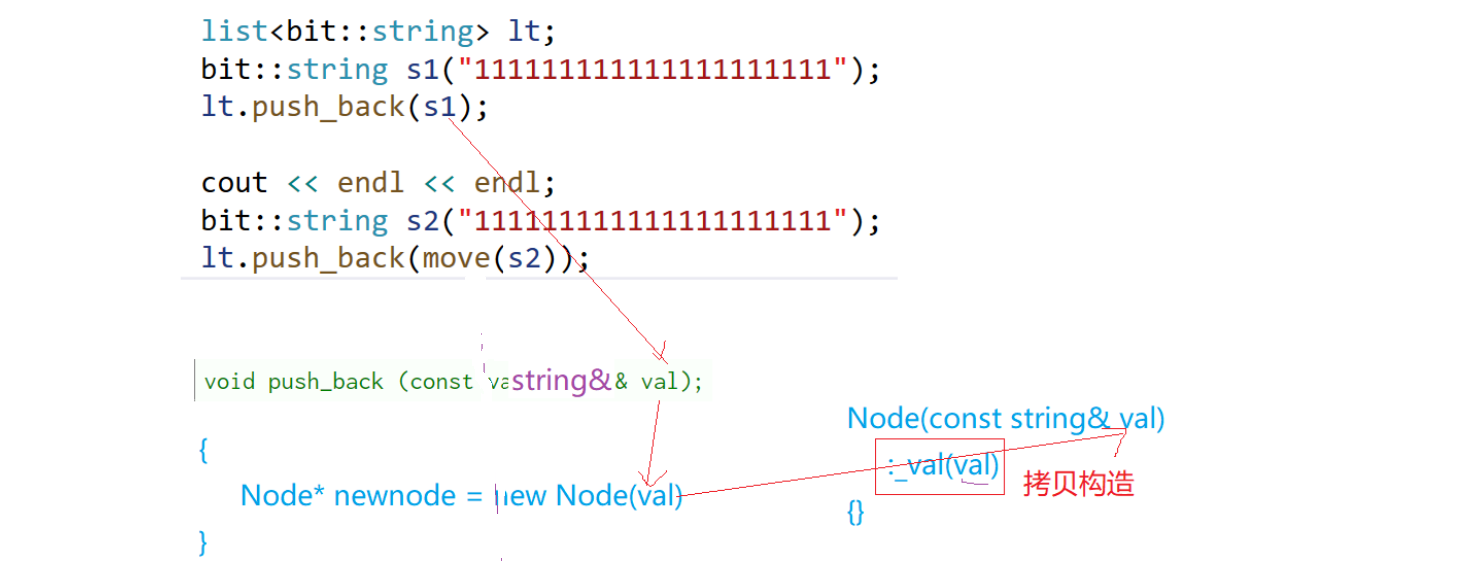Node里发生拷贝构造,跟s开一样大的空间。现在push_back一个右值,右值引入一个函数: