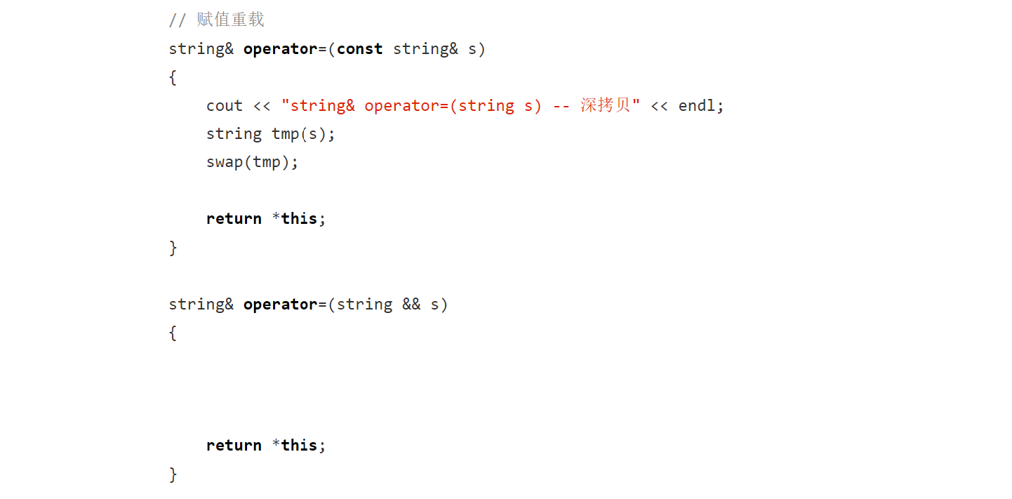 是左值只能老实的深拷贝,若是右值将亡值,可用移动拷贝,它可以把资源拷过来。下面看,是右值将亡值可做深拷贝,但还可以做移动拷贝(一交换帮忙带走):