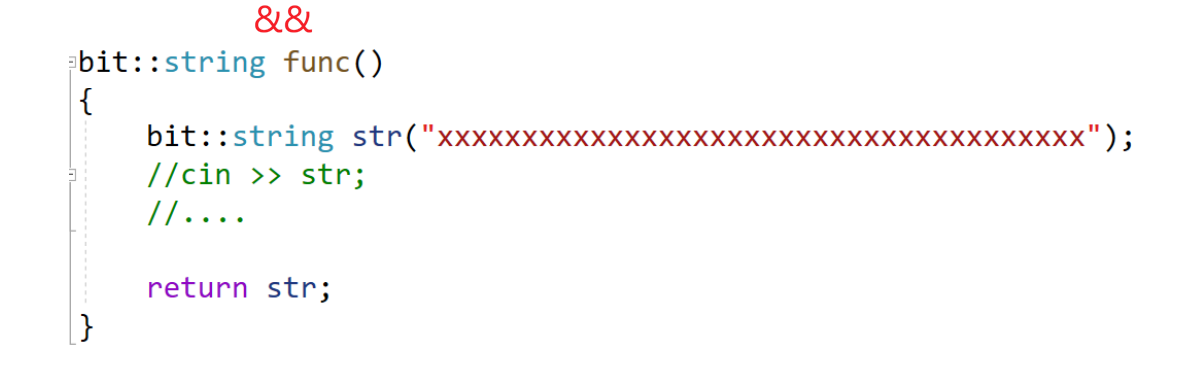这样返回的是str的别名,它会正常销毁,拿到的是野指针。只有传值返回+优化编译器才能把它强行识别为右值。再看这样的场景: