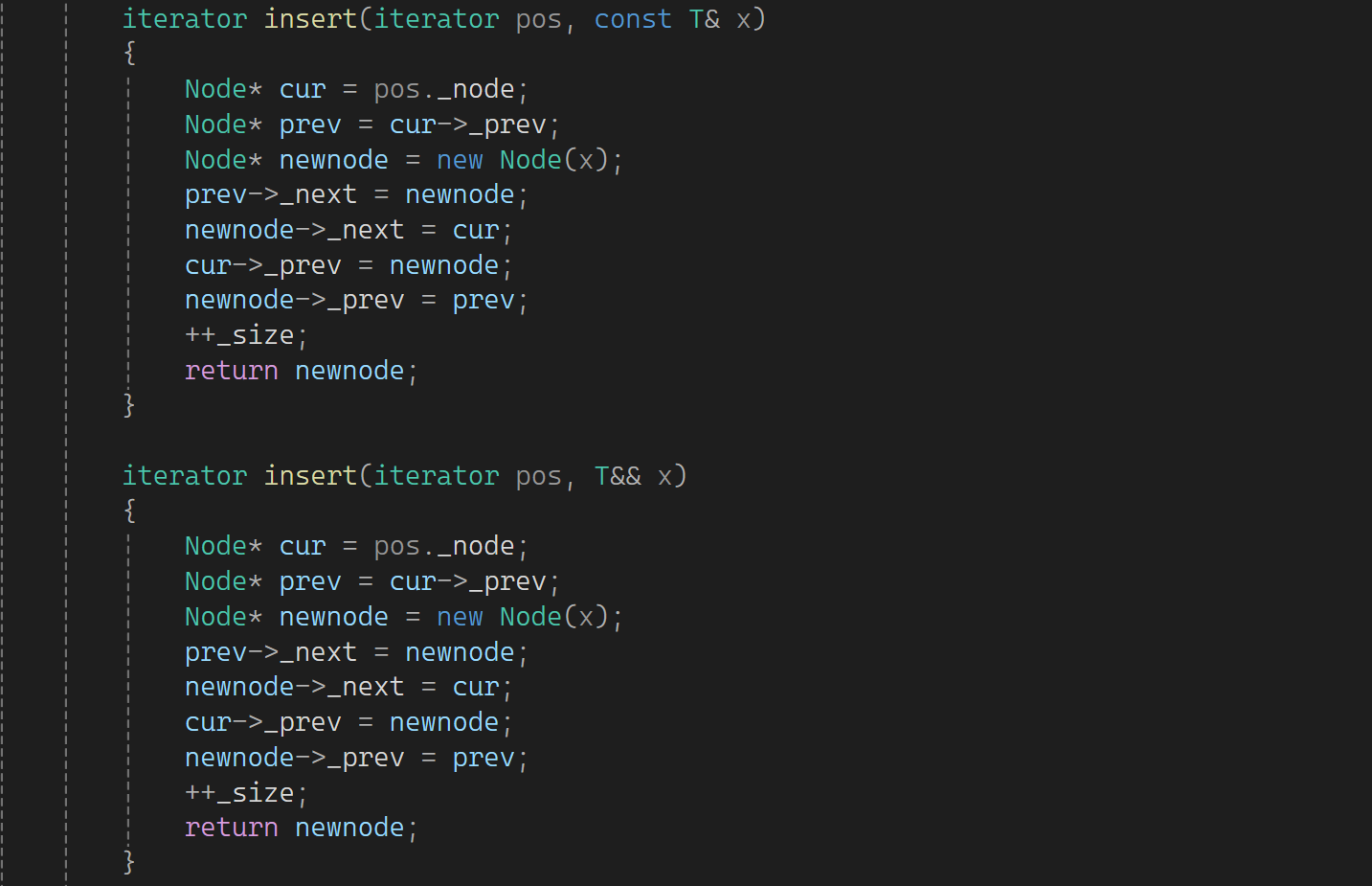 按照以前的版本插入时左值和右值都匹配到左值引用上了,这样就不存在说后面转移资源的概念了,所以在之前的基础上加一个函数来区分左右:
