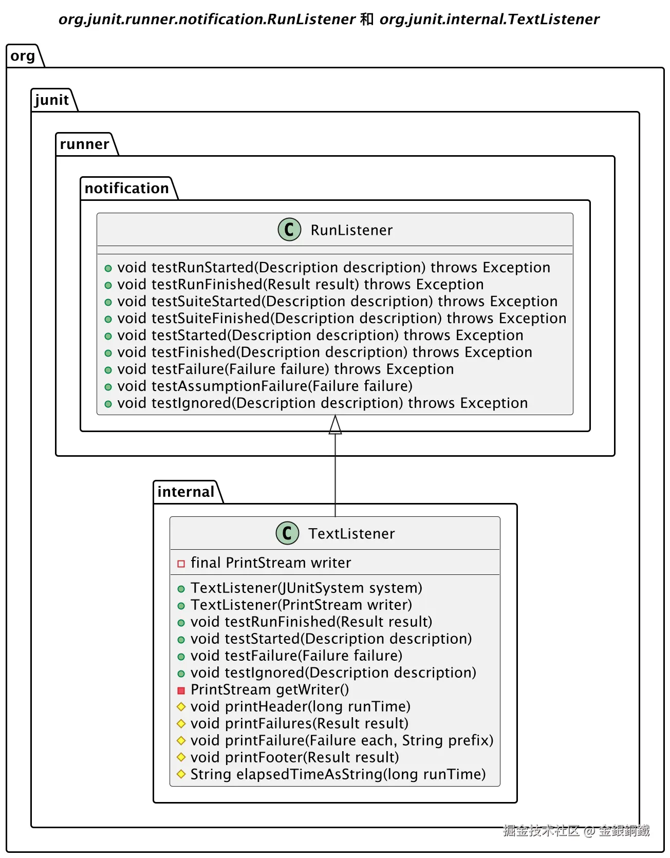org.junit.internal.TextListener 继承了 org.junit.runner.notification.RunListener