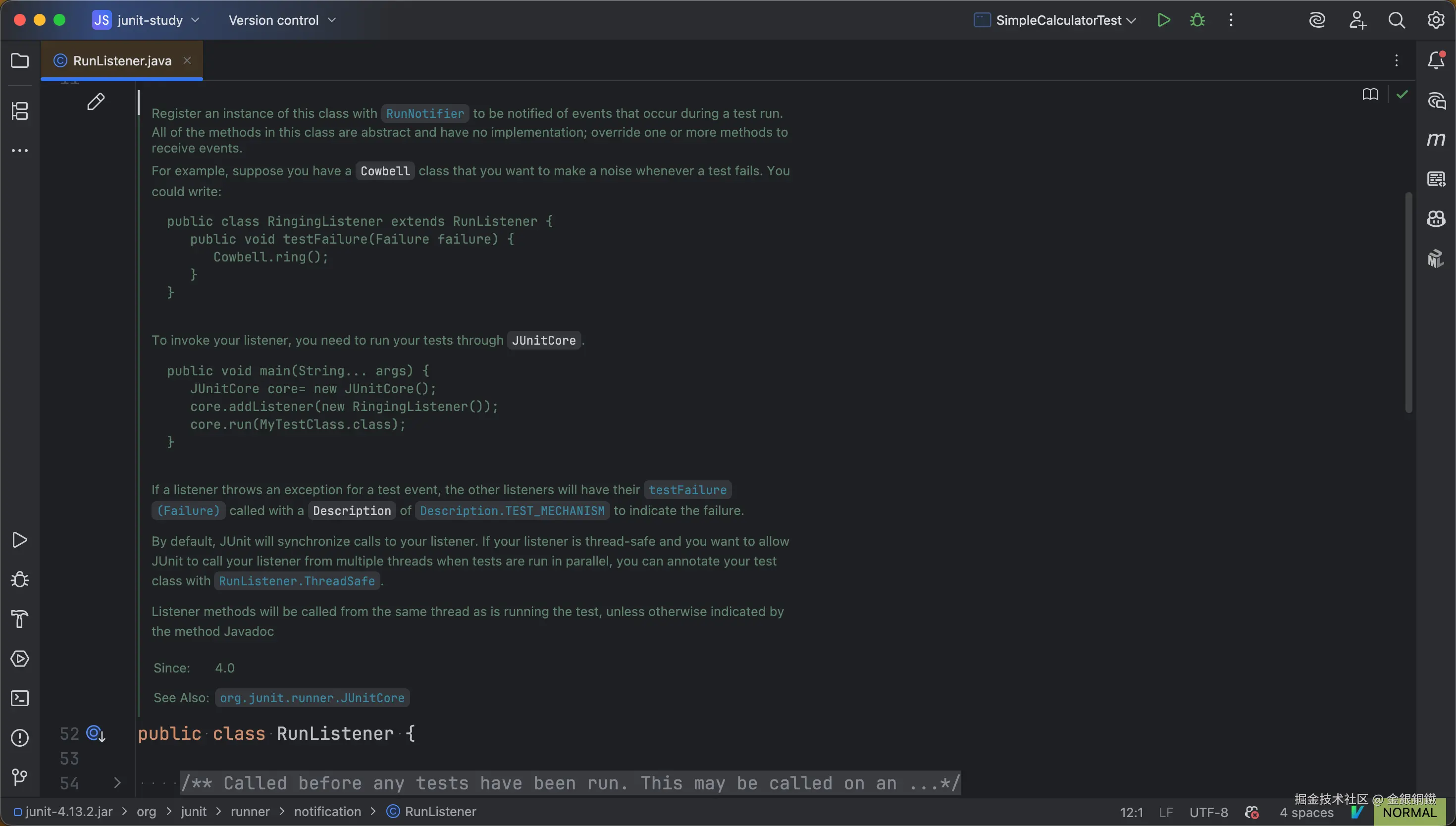 在 org.junit.runner.notification.RunListener 的 javadoc 里可以看到这个类的介绍 ⬇️