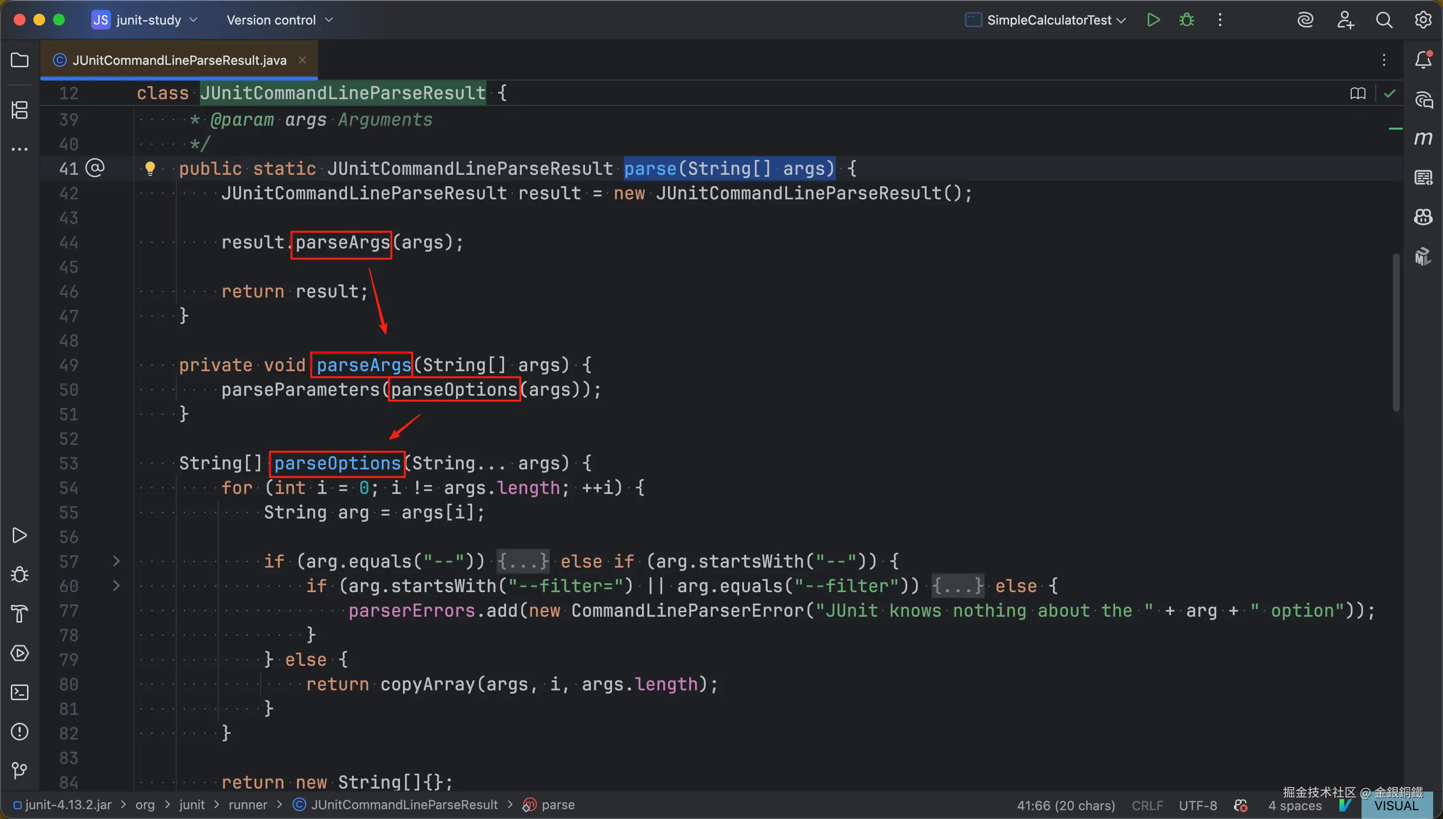 我们看一看 org.junit.runner.JUnitCommandLineParseResult 的 parse(String[] args) 方法 ⬇️