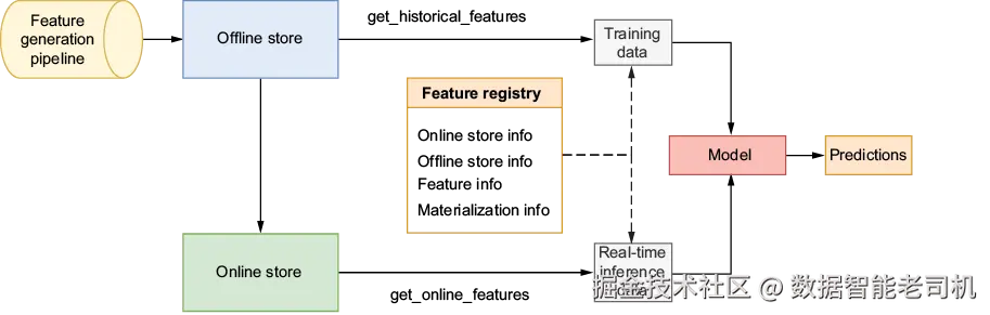 - Feast 支持时间点正确(point-in-time)的 join,以确保推理时特征的新鲜度。