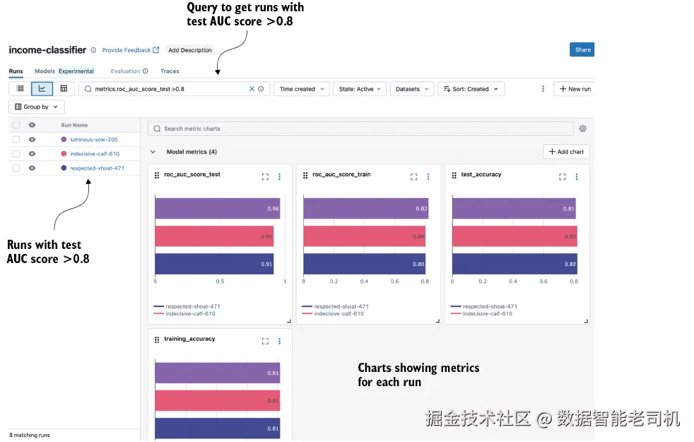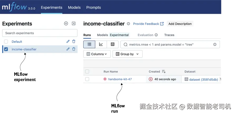 MLflow 通过为实验过程提供结构来帮助回答这些问题。我们用这个收入分类示例来看看它如何在实践中工作。