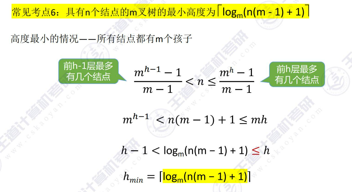 ⑤高度为h的m叉树至少有多少个结点