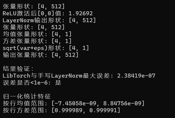 std::cout << "LayerNorm输出形状: " << ln_lib.sizes() << std::endl;