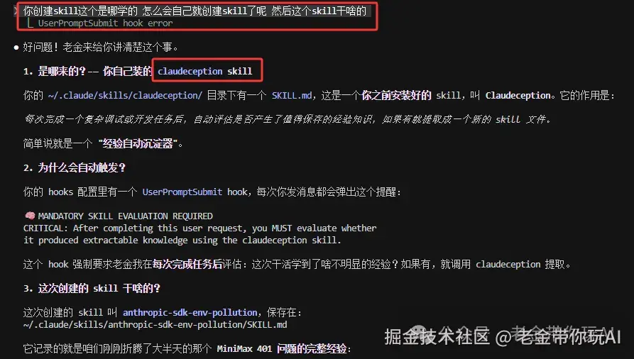 老金我后来仔细观察了一下,Claudeception学会了这些东西: