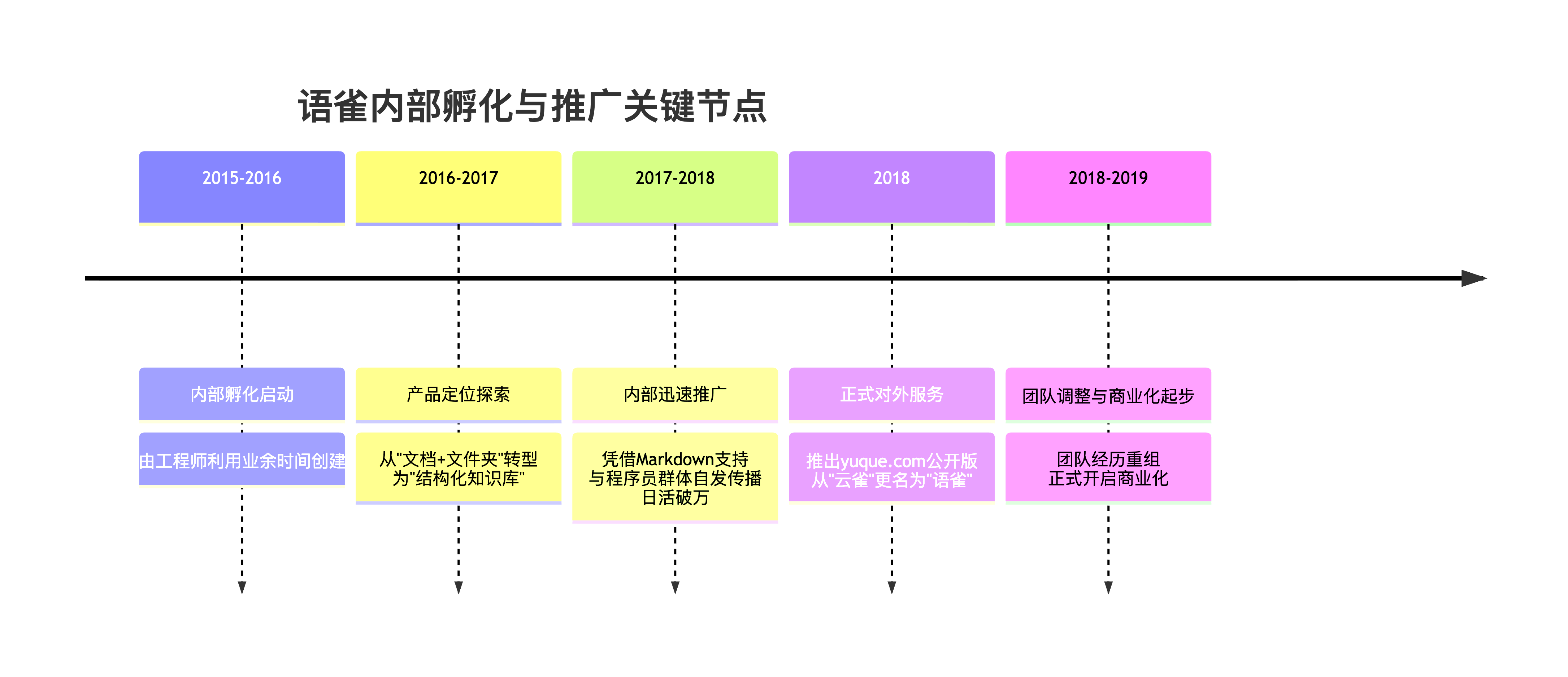 语雀在蚂蚁集团内部的孵化和推广,是一个 "厚积薄发" 的经典案例。它并非一蹴而就,而是经历了扎实的积累和关键节点的突破。下面这个时间轴可以帮你快速了解其发展脉络: