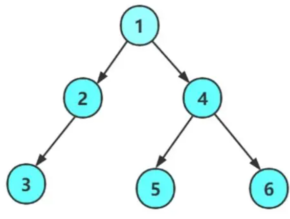 我们拿这个二叉树来举例,我们把1放进队列里面然后再把1从队列里面拿出来,再把2和4放进队列里面再把2从队列里面拿出来,再把3放进4后面然后把4取出来,再把5和6放在3的后面以此类推