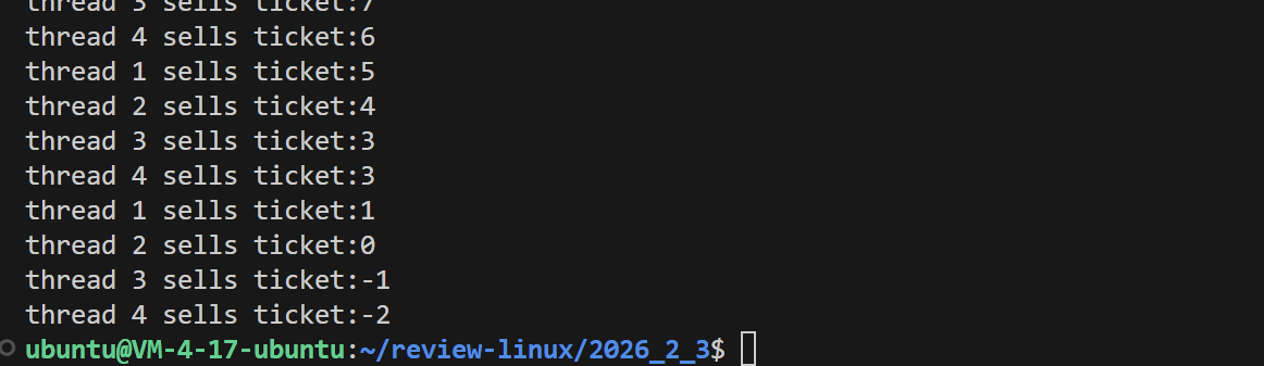 **现象:**票被抢到负数!!!。这就是没有对共享资源的保护!!!