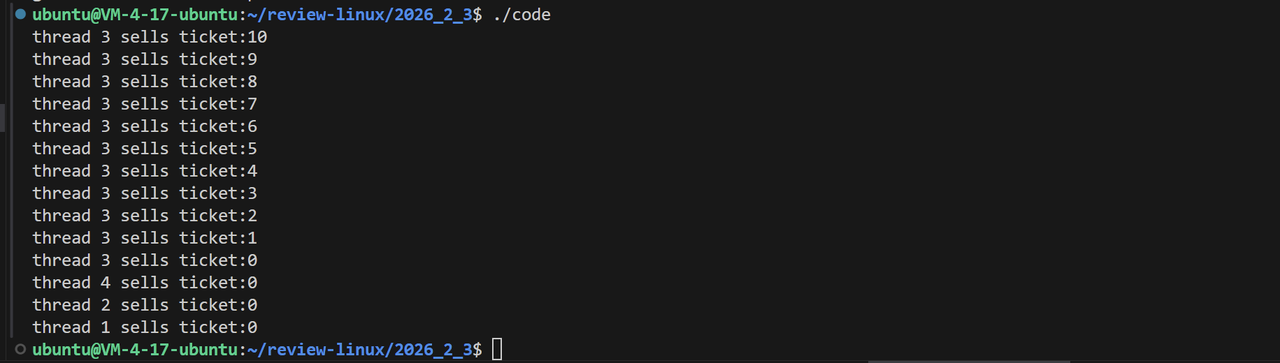 票就是临界资源,对临界资源加锁,即可解决问题,如下所示的代码。