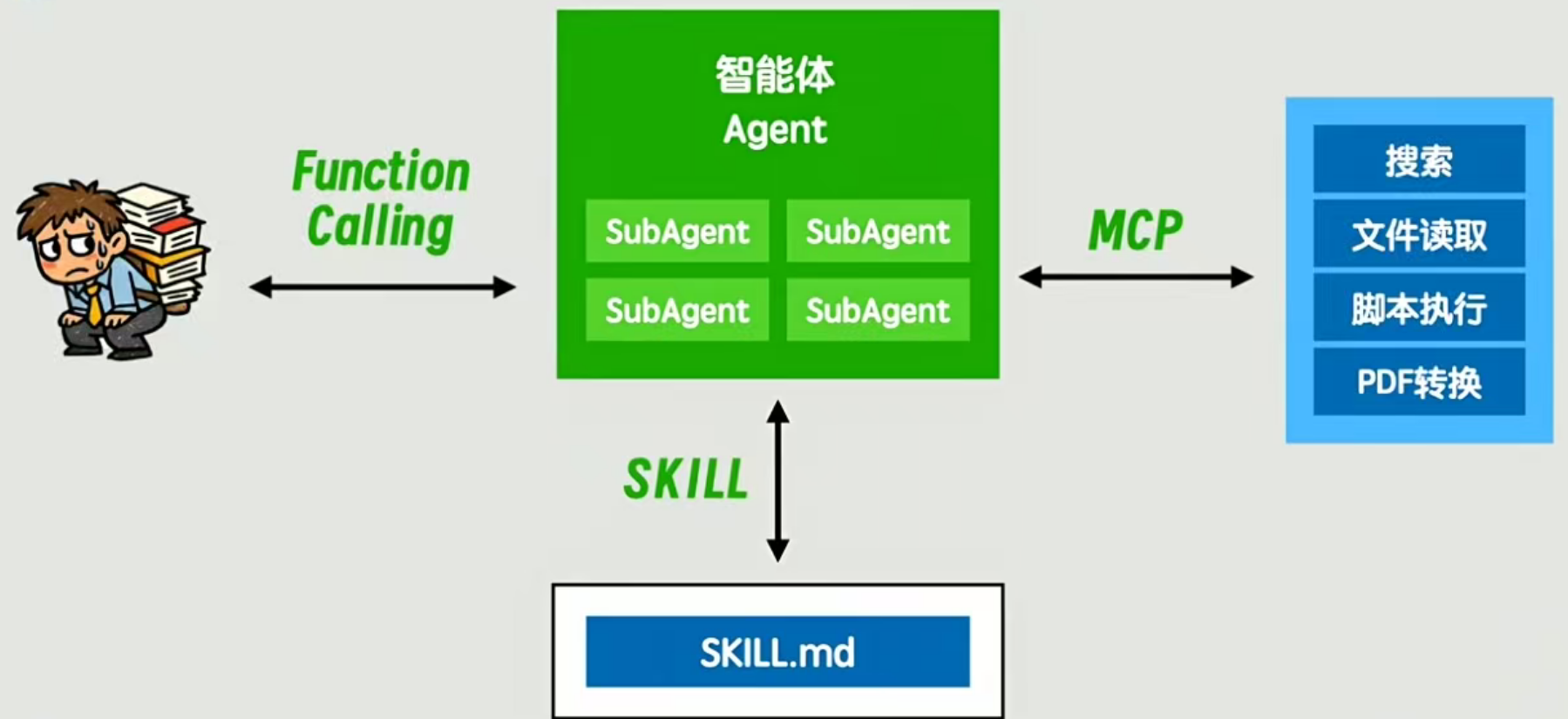 Sub Agent(子智能体):处理复杂任务时的 "子审核员",负责单一子任务(如逐份核对参保信息、计算报销金额),实现上下文隔离,避免主 Agent 信息臃肿。