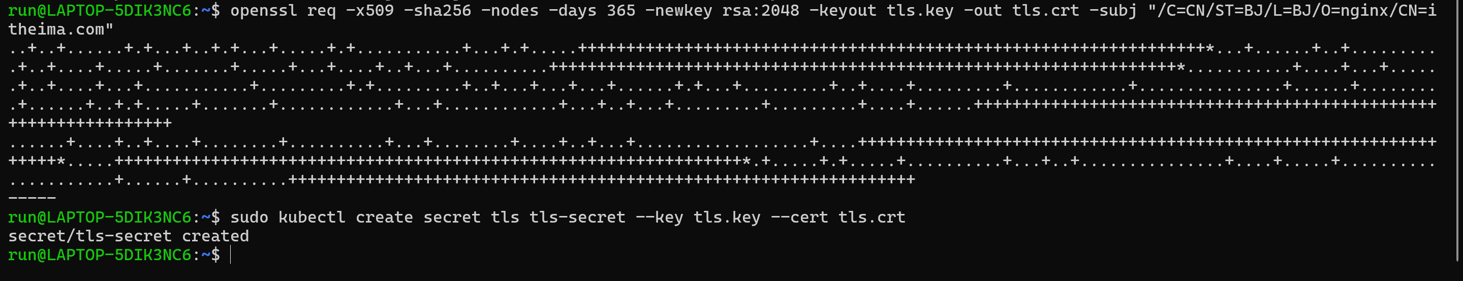 kubectl create secret tls tls-secret --key tls.key --cert tls.crt