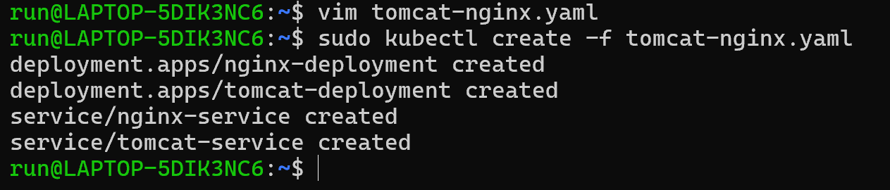 sudo kubectl create -f tomcat-nginx.yaml