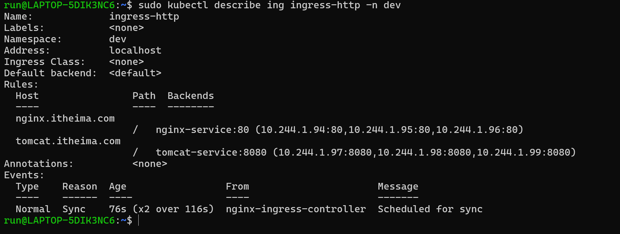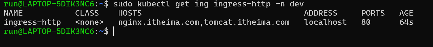 kubectl get ing ingress-http -n dev
