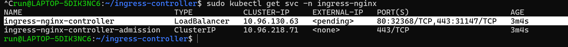 sudo kubectl get svc -n ingress-nginx