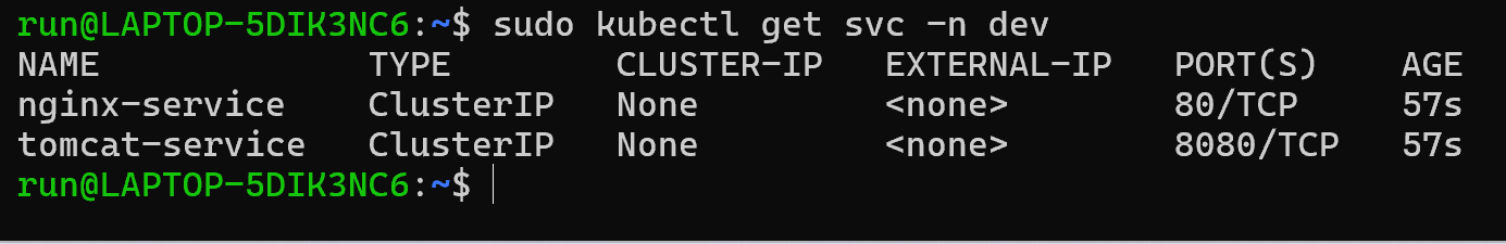 kubectl get svc -n dev