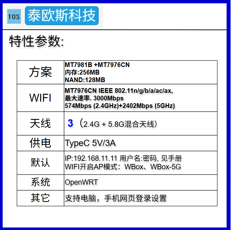 TOS-WBox的WIFI支持AP热点和基站Client模式,两种模式可同时存在;
