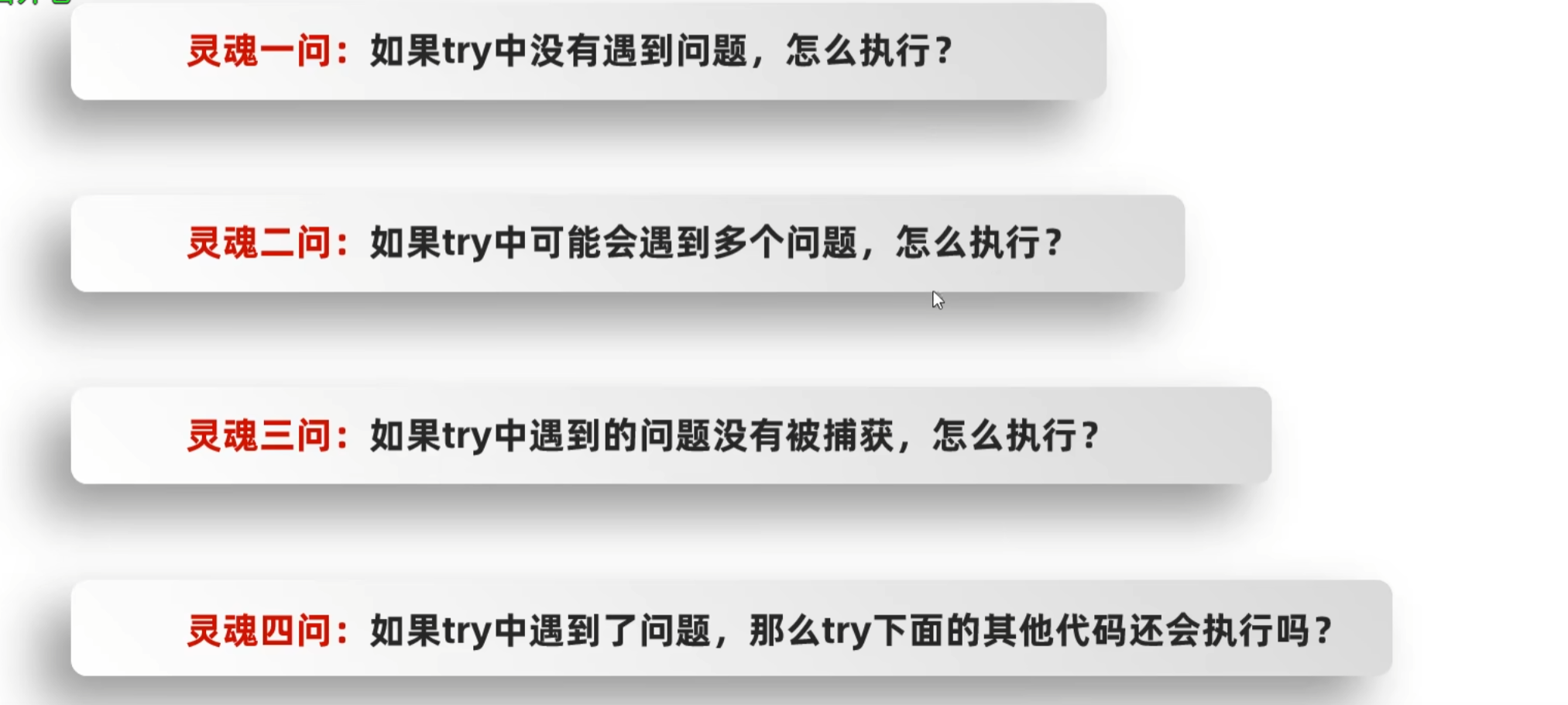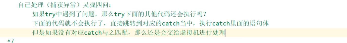 注意第四问中是下面的代码不会执行了,下面如果还有异常还是会进行捕获的