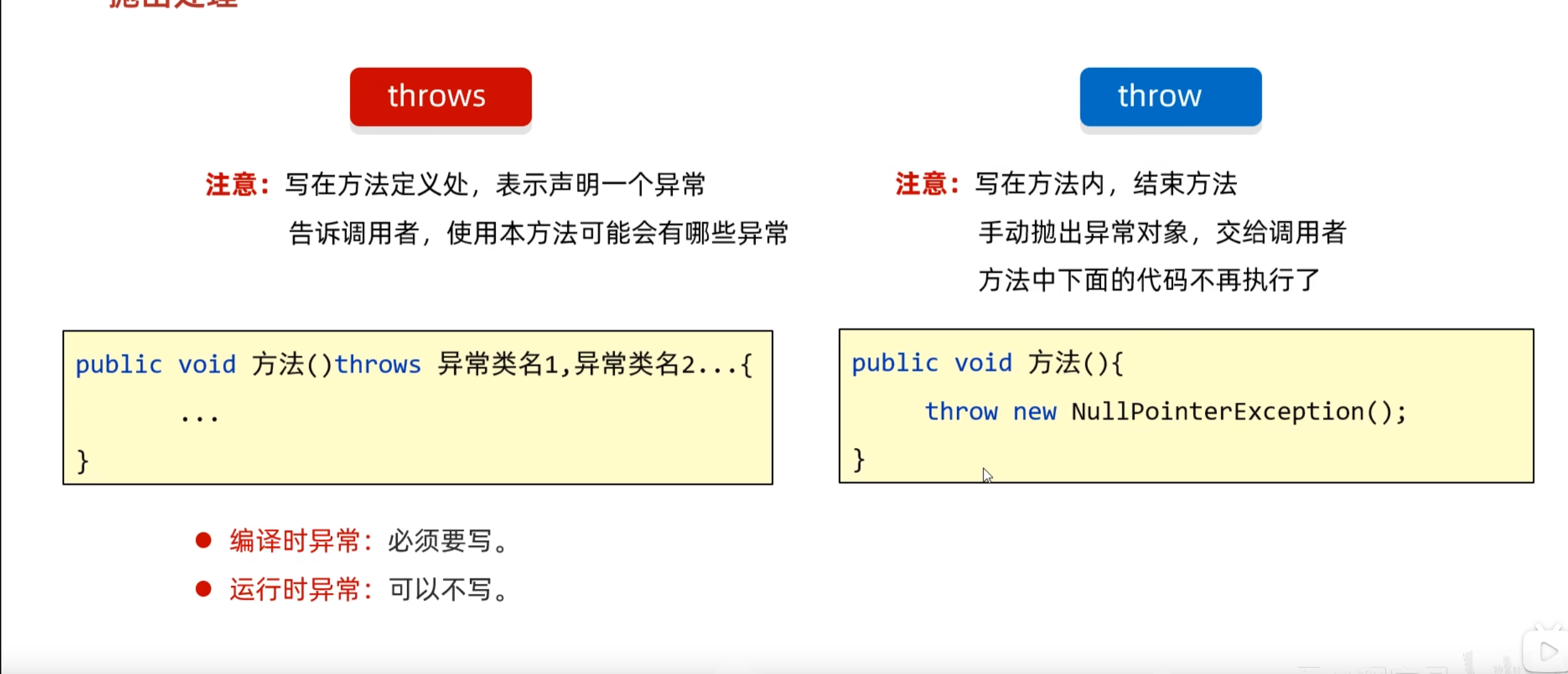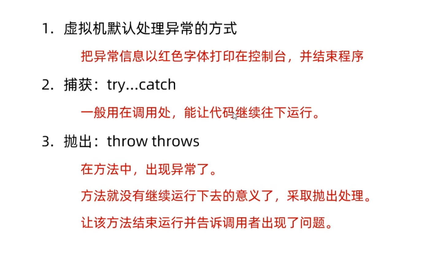 在抛出异常中告诉调用者后调用者一般会采取, try.catch的方法处理这个异常
