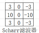 其他常用的滤波器还有 Sobel 滤波器和 Scharr 滤波器,它们给中心行赋予更多权重,使检测更加稳健。