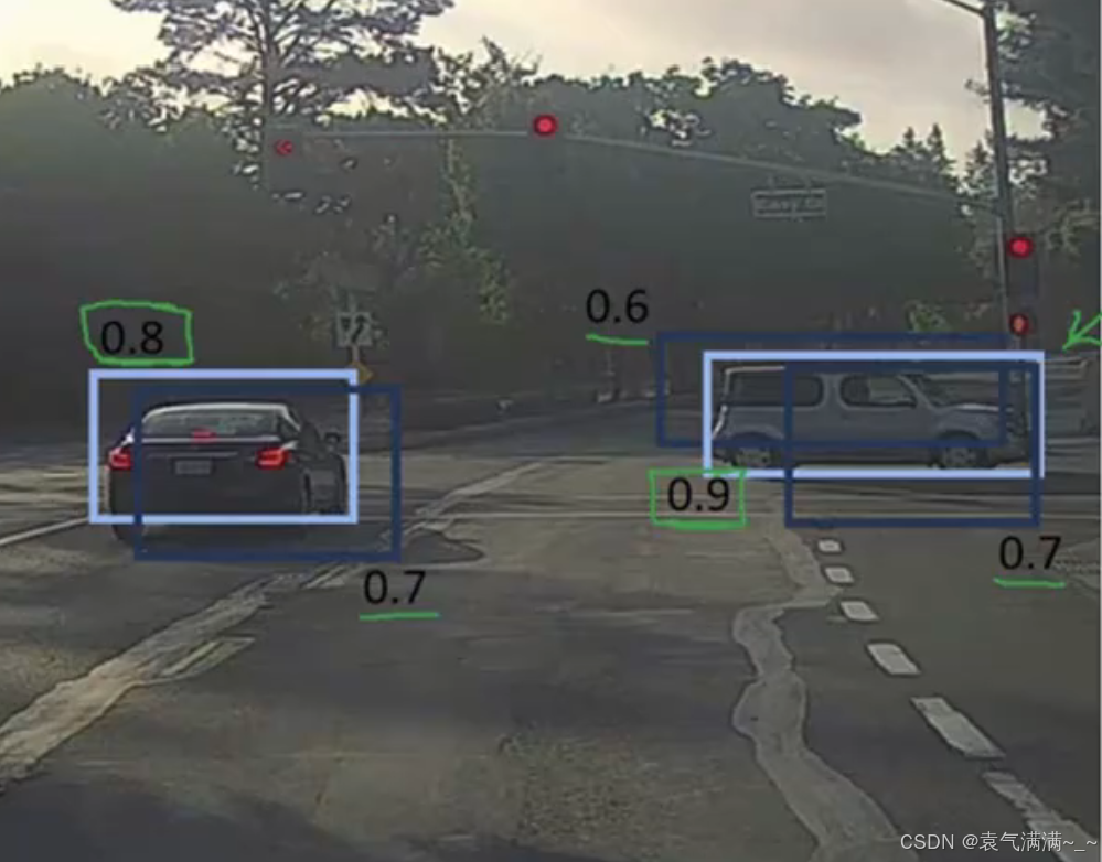 非极大值抑制会通过清理检测结果,找到每个目标中点所位于的网格,确保算法对每个目标只检测一次。