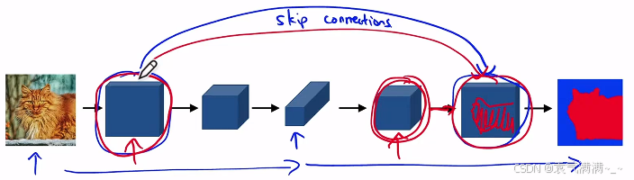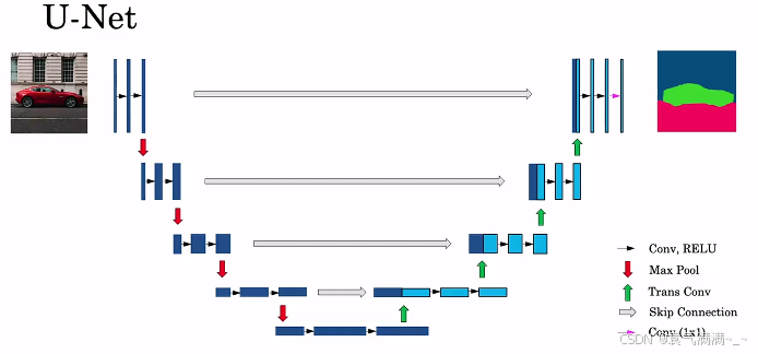 而在语义分割模型中,由于模型的输出也是一幅图像,在输入图像被卷小了以后,还会有一个放大的过程。